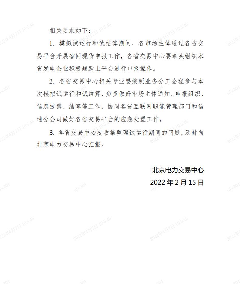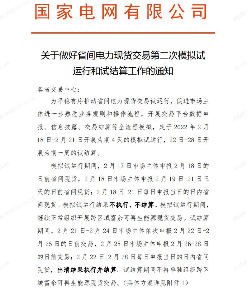 关于做好省间电力现货交易第二次模拟试 运行和试结算工作的通知