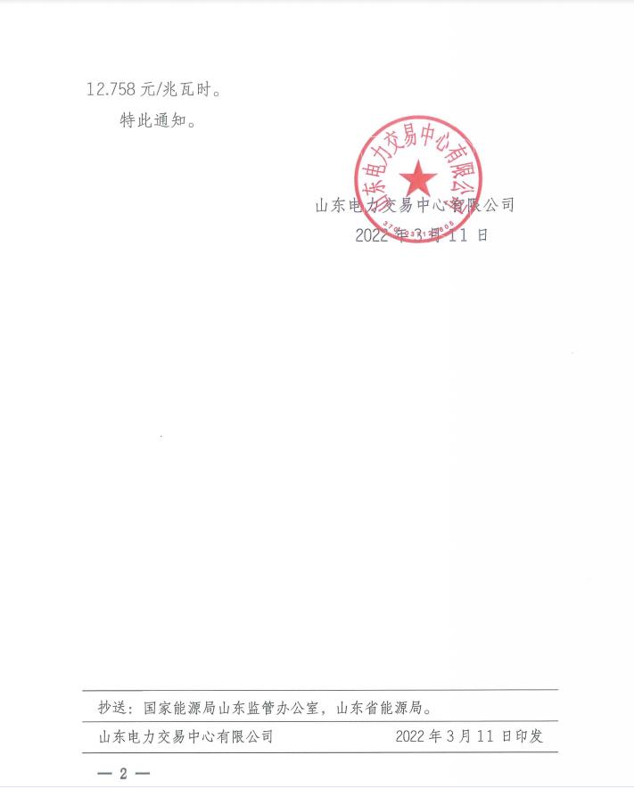 山东电力交易中心有限公司关于发布2022年2月份优发优购曲线匹配偏差费用分摊标准的通知