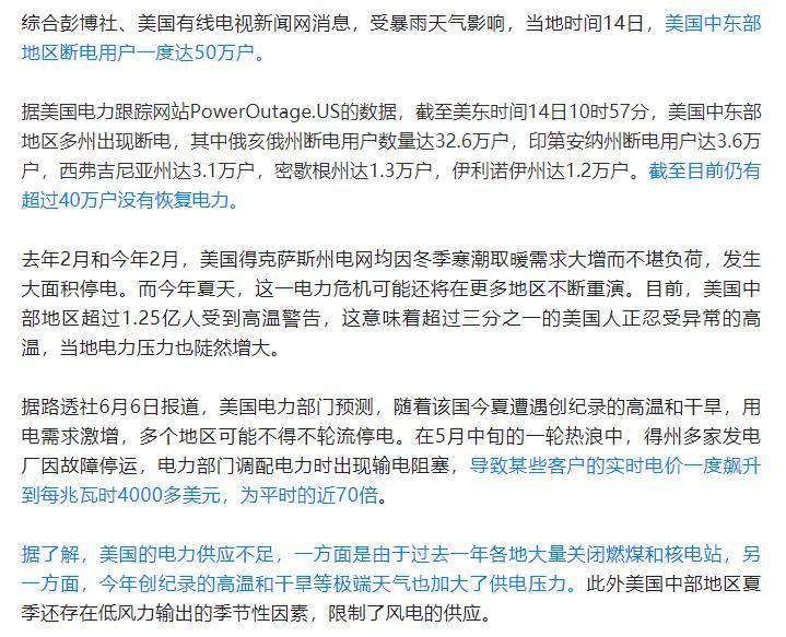 电力危机重演:美国超50万户停电,电价曾一度飙升70倍!