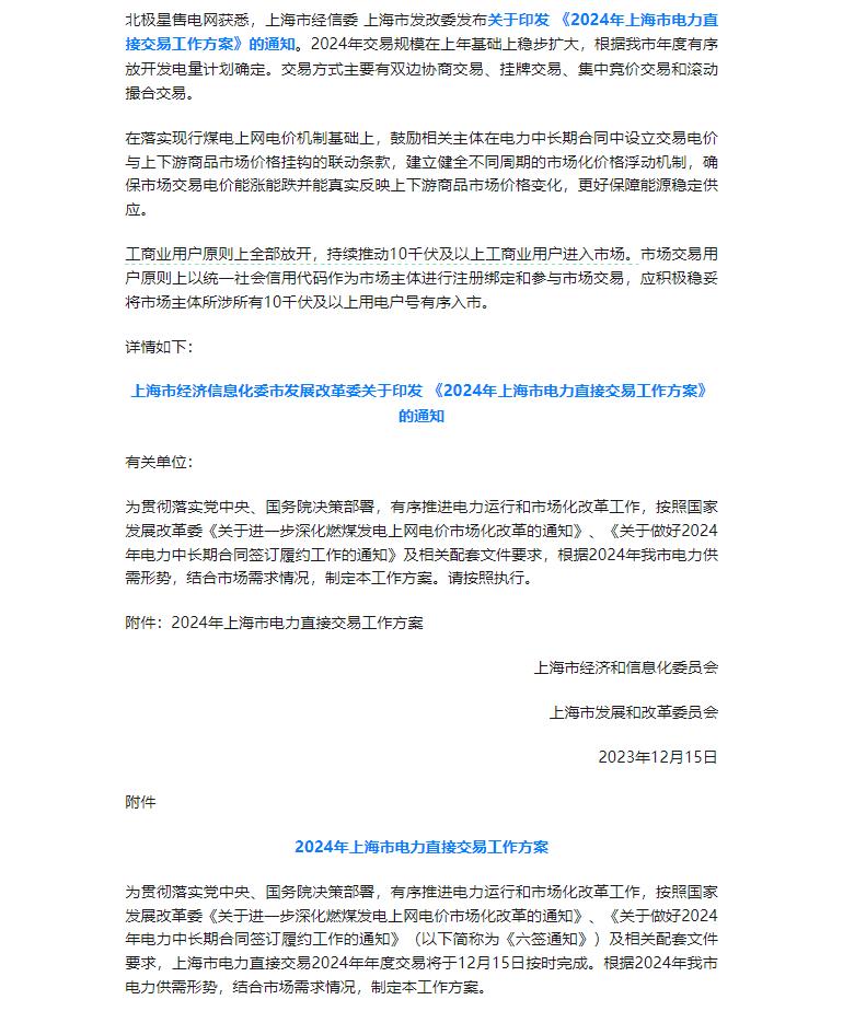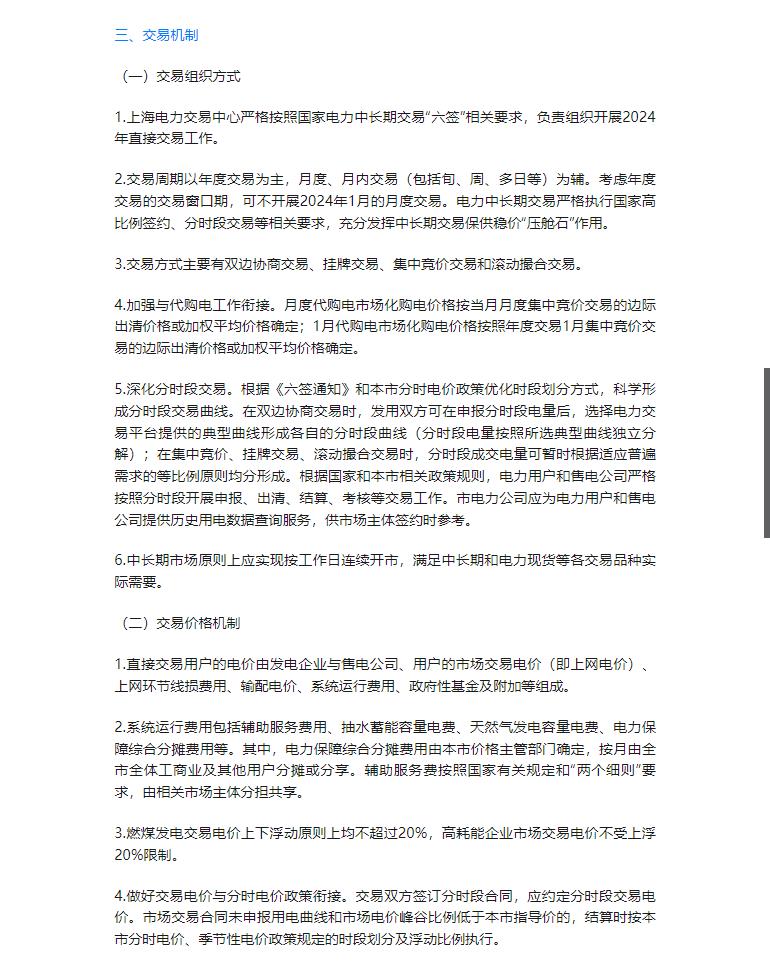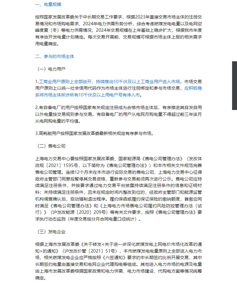 2024年上海电力直接交易方案:稳妥将所涉所有10千伏及以上用电户号有序入市