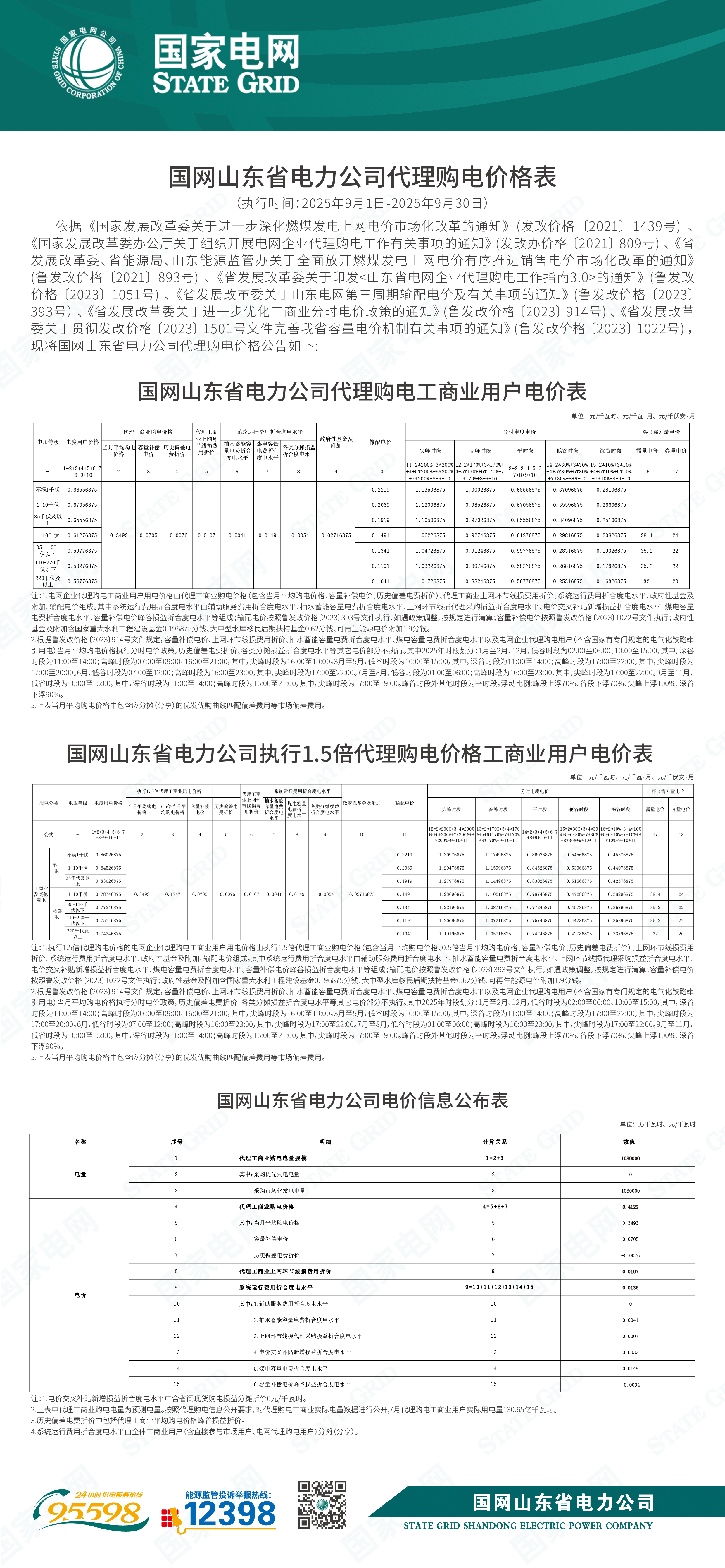 国网山东省电力公司关于2025年9月代理购电价格公告